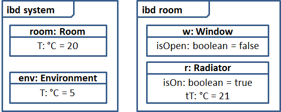 This page collects the SysML diagrams specifying the Room system in the book. The diagrams are only a partial description of the system - we might in the future add more diagrams to cover the systems completely.